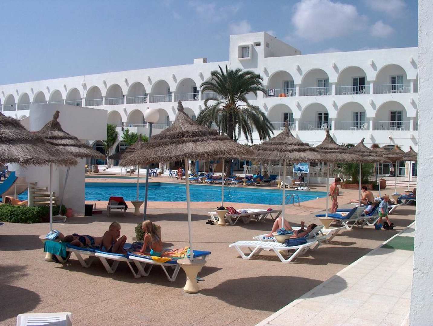 Primasol El Mehdi Anlage mit Blick auf den Pool und das Restaurant