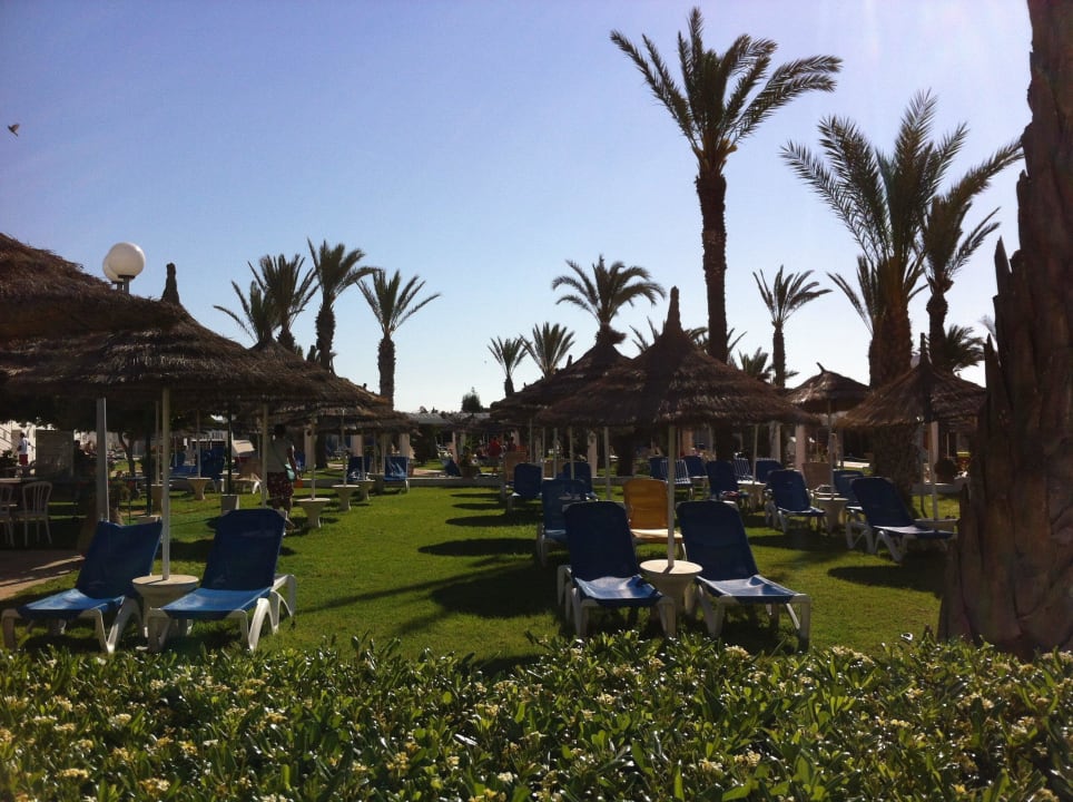 Wiese mit Sonnenliegen