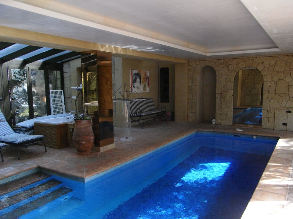 Der PoolDie Poolanlage ist überdacht und ist im hinteren Teil verglast, so dass man sich wunderbar nach dem Schwimmen auf einer Liege sonnen kann.