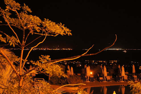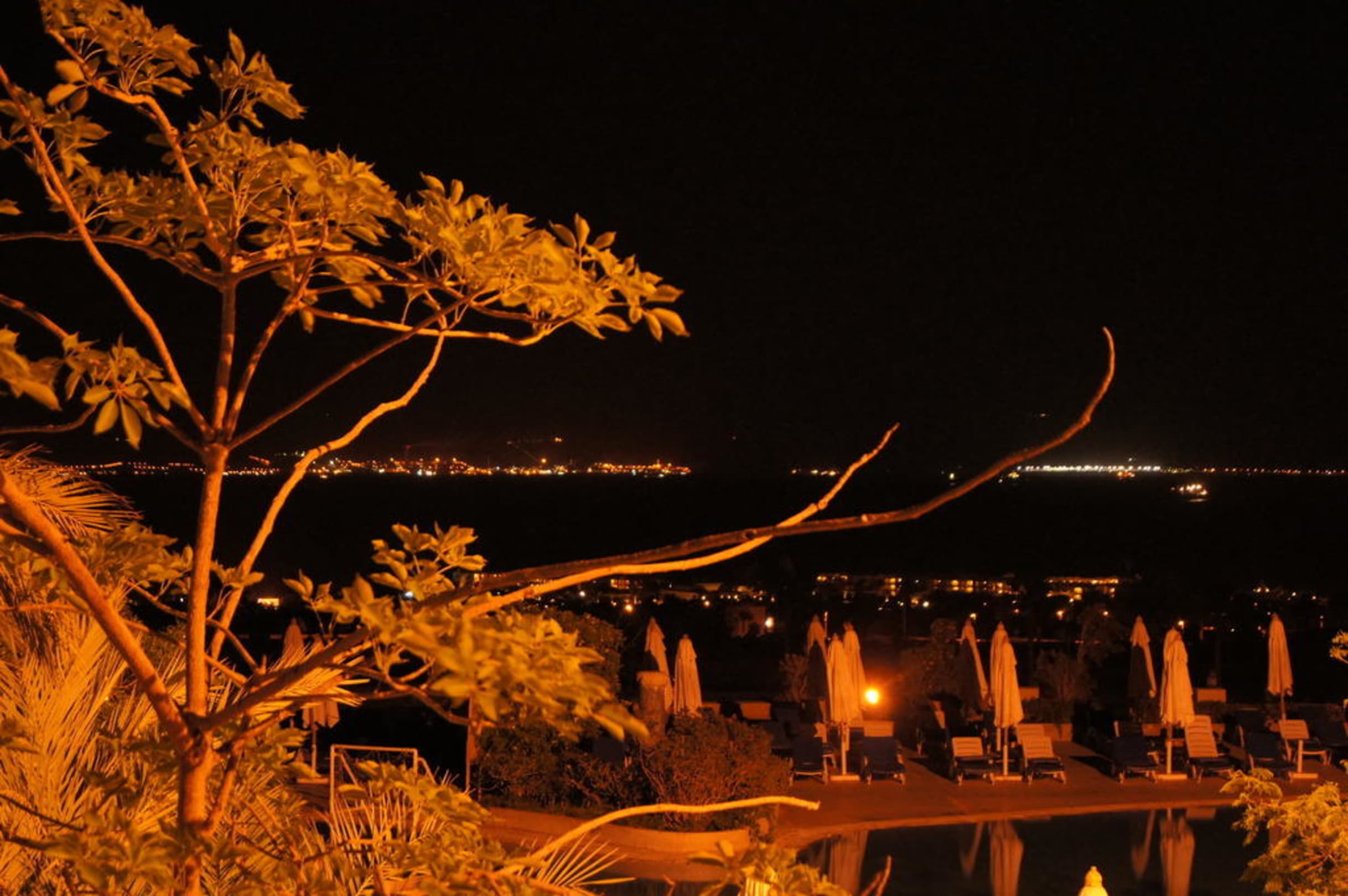 Nocny widokwidok na Morze Czerwone oraz przeciwległy brzeg Arabii Saudyjskiej i Jordanii