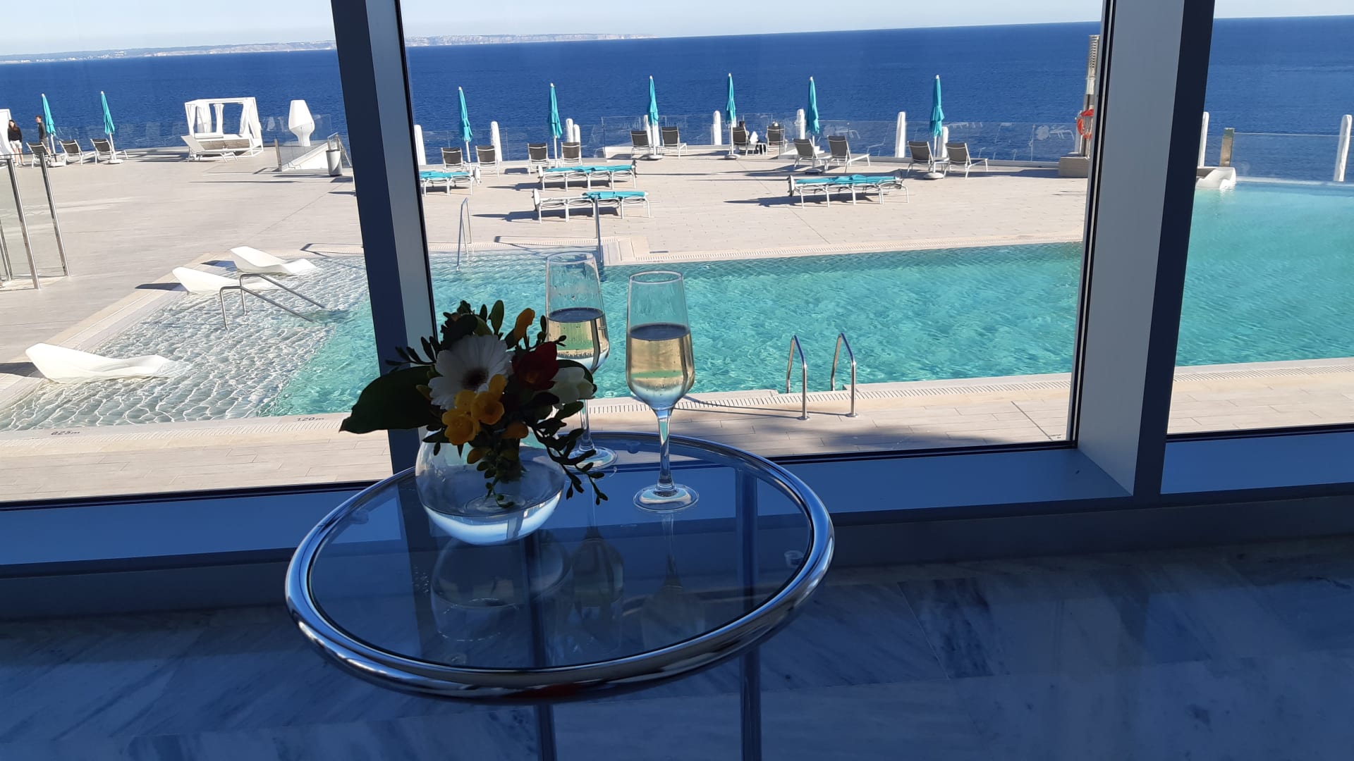 Begrüßungssekt bei Ankunft in der Lobby