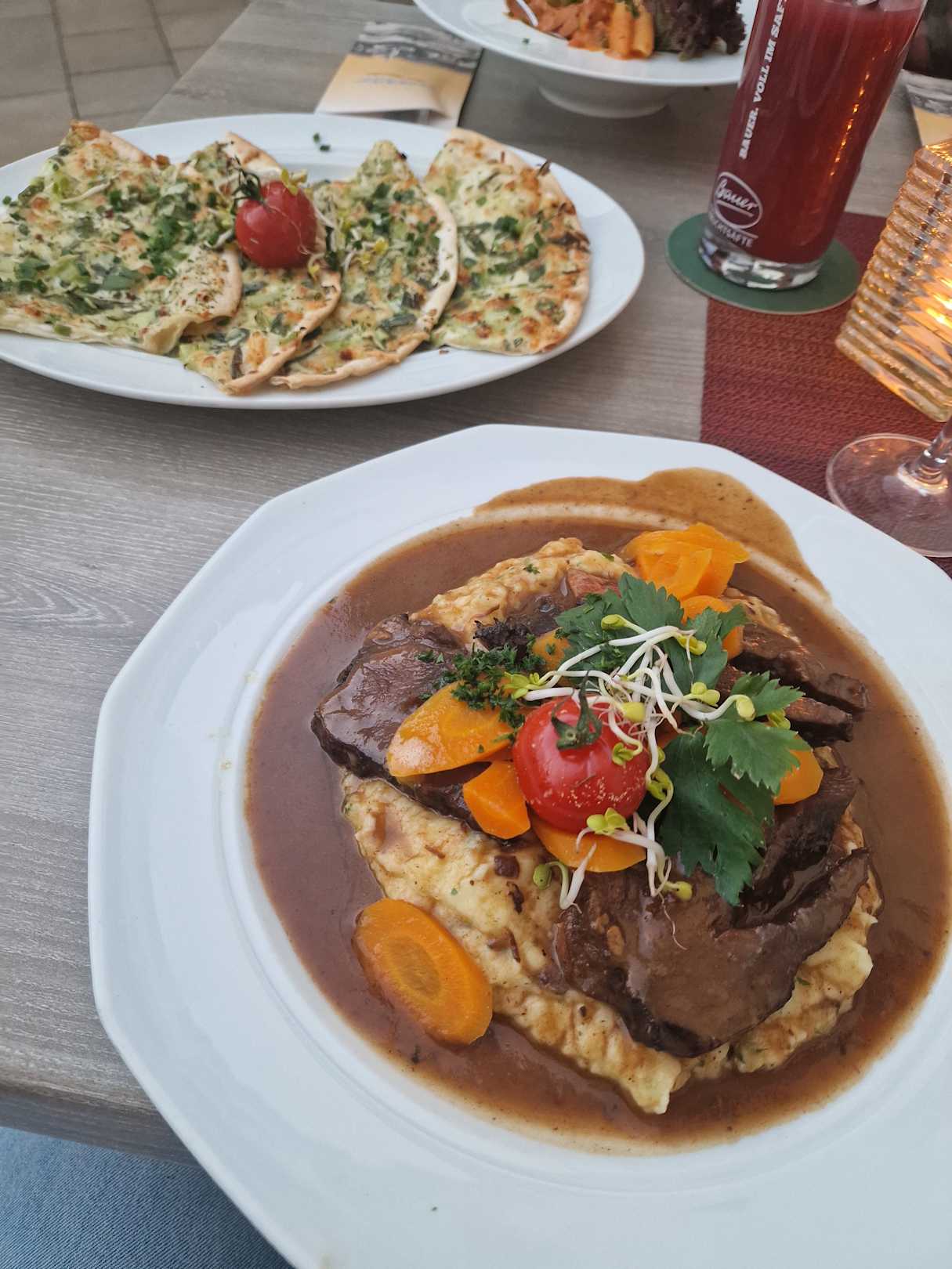 Ochsenbäckchen mit Kartoffelbrei,Flammkuchen