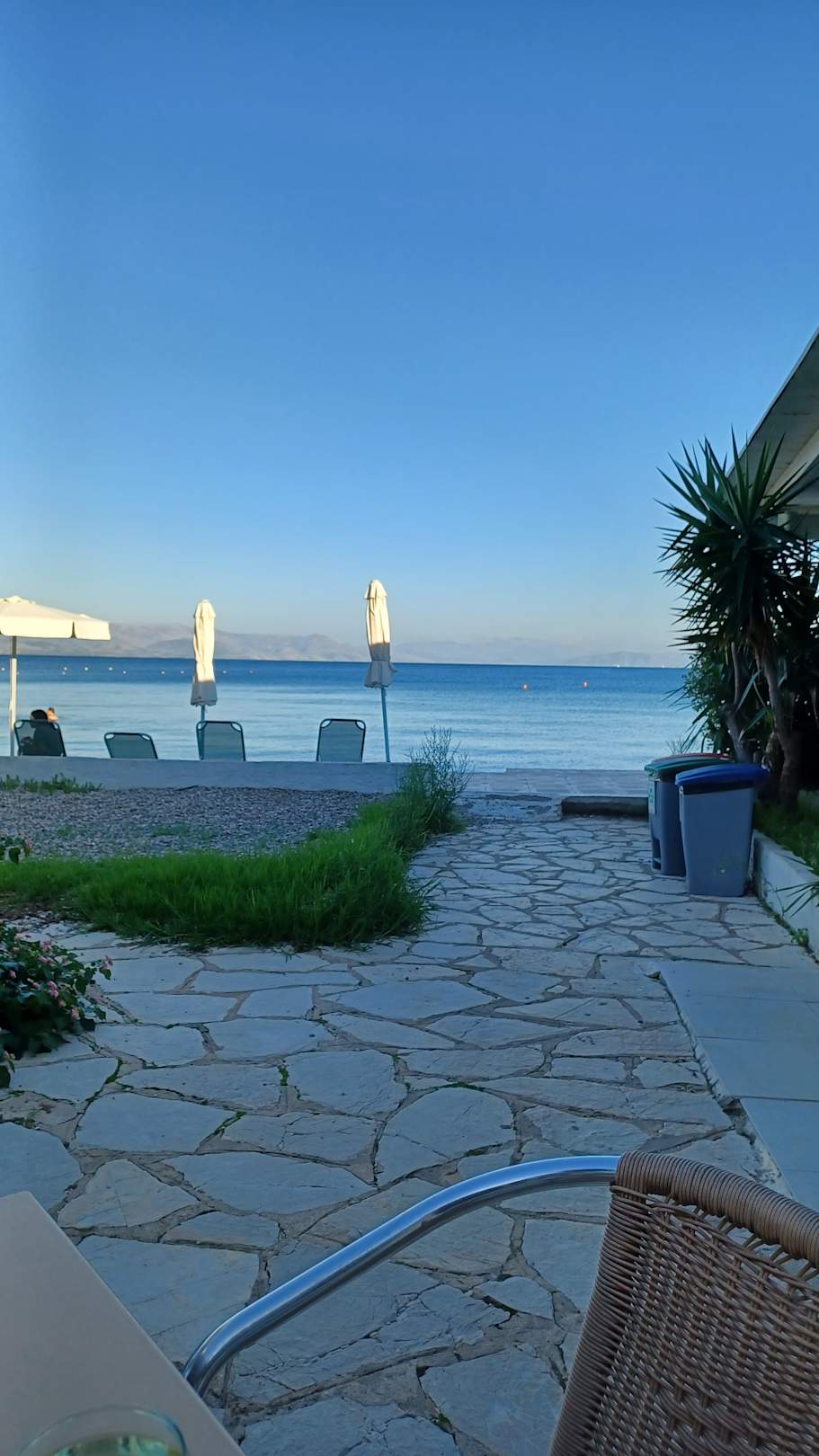Blick von der Terasse zum Meer.