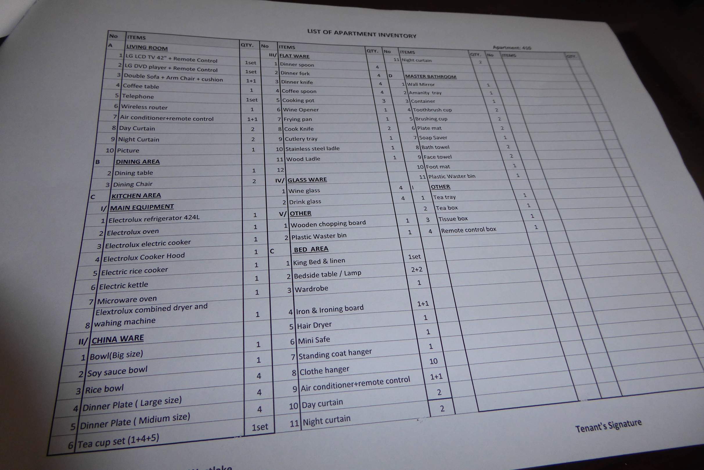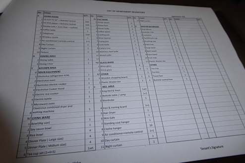 Inventarliste des Zimmers