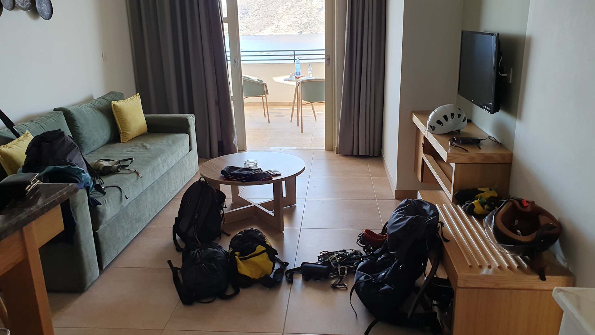 Kletterausrüstung wird sortiert für die ersten Touren.