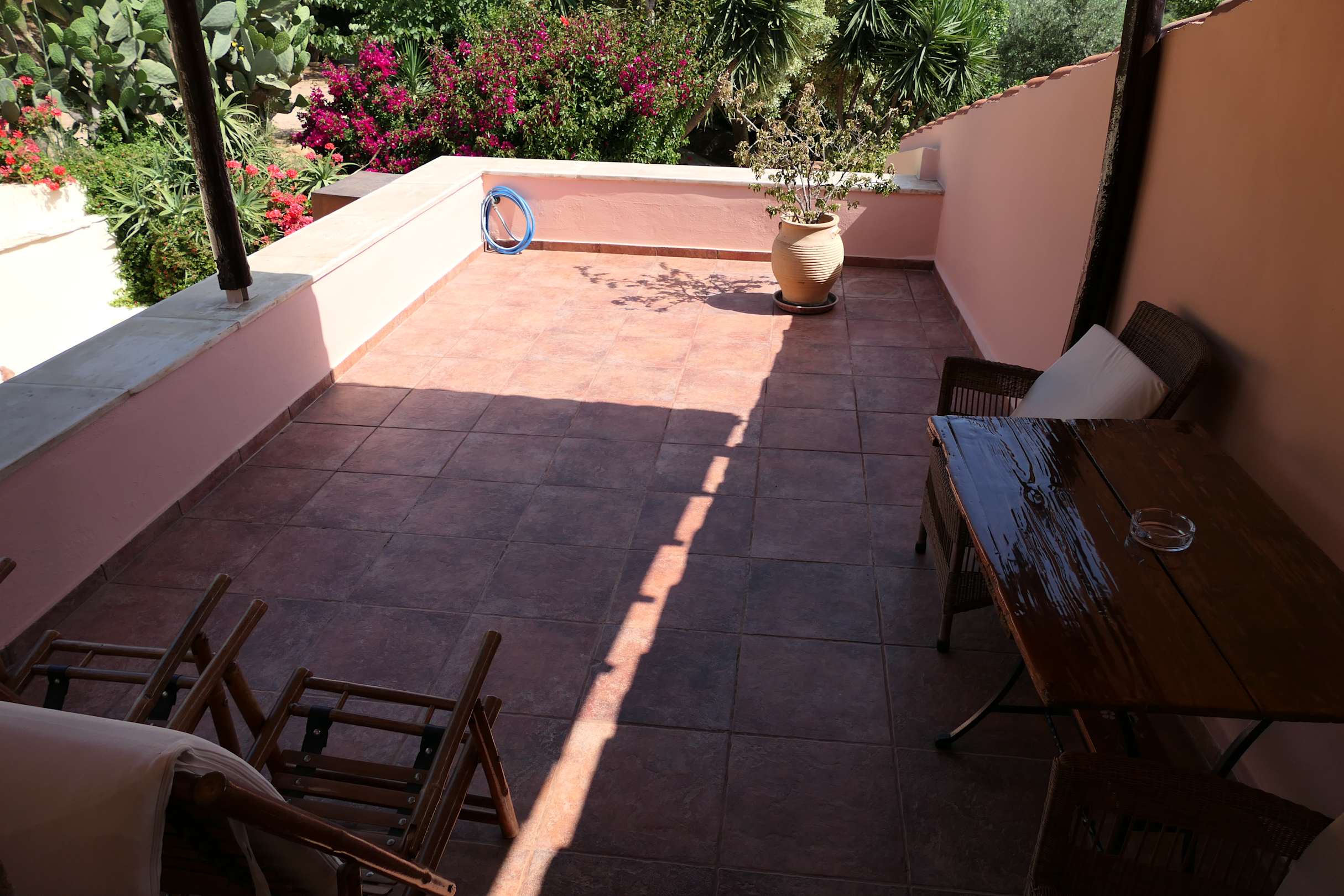 eigene Terasse mit Liegestühlen, Tisch, Stühlen