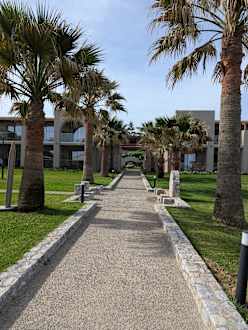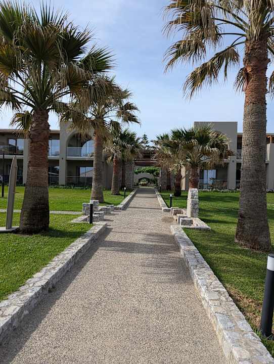 Blick vom Strand zum Hotel (zu sehen die Beachfront Zimmer)