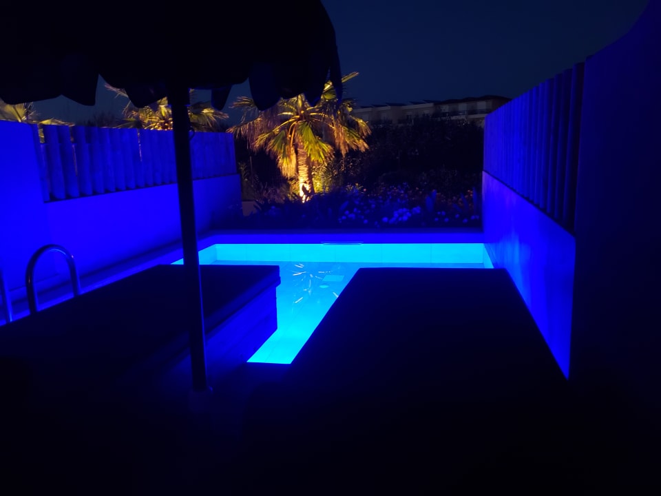 Zimmer mit Pool am Abend