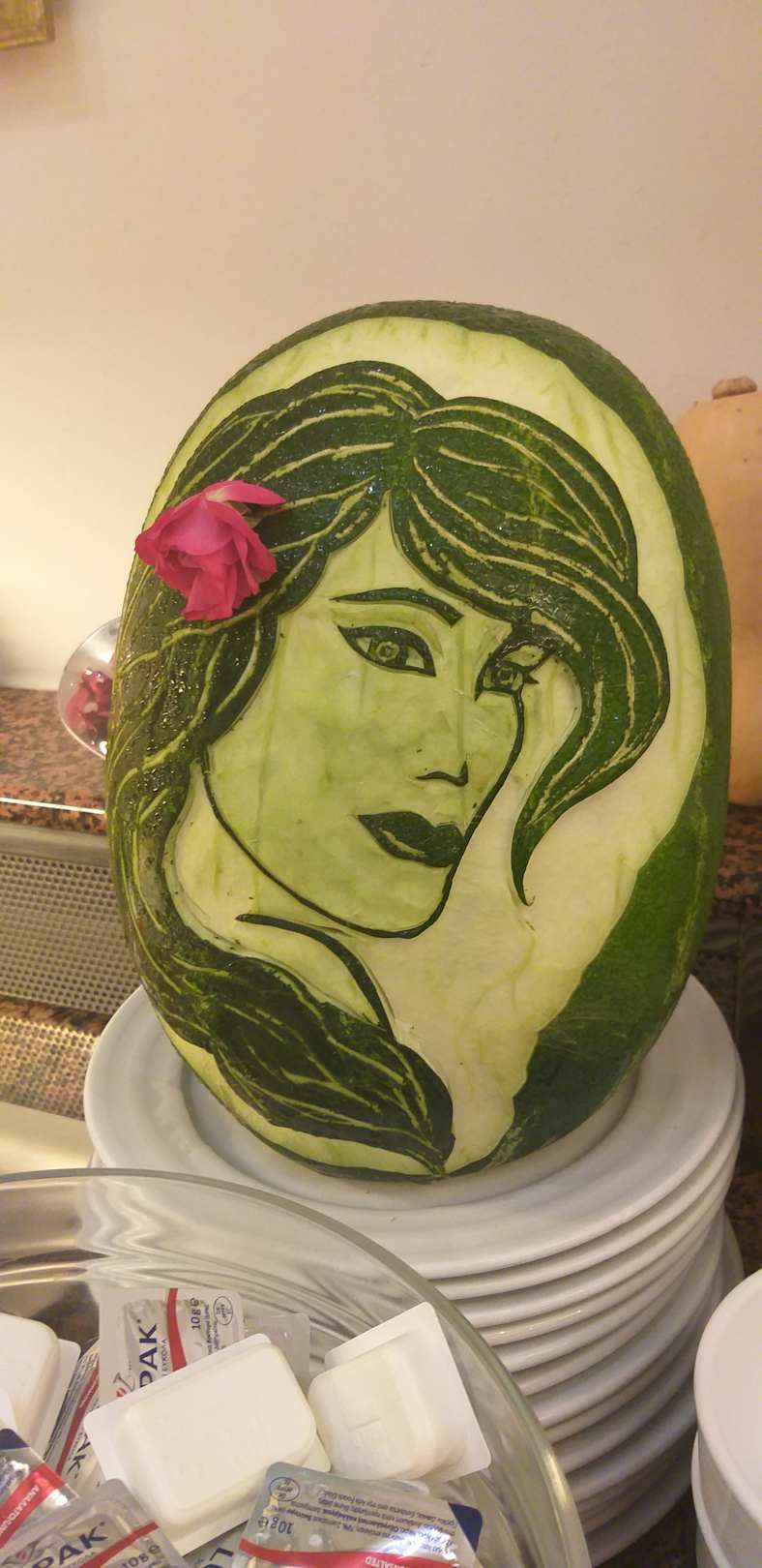 wunderschöne Deko zwischen den Speisen angerichtet