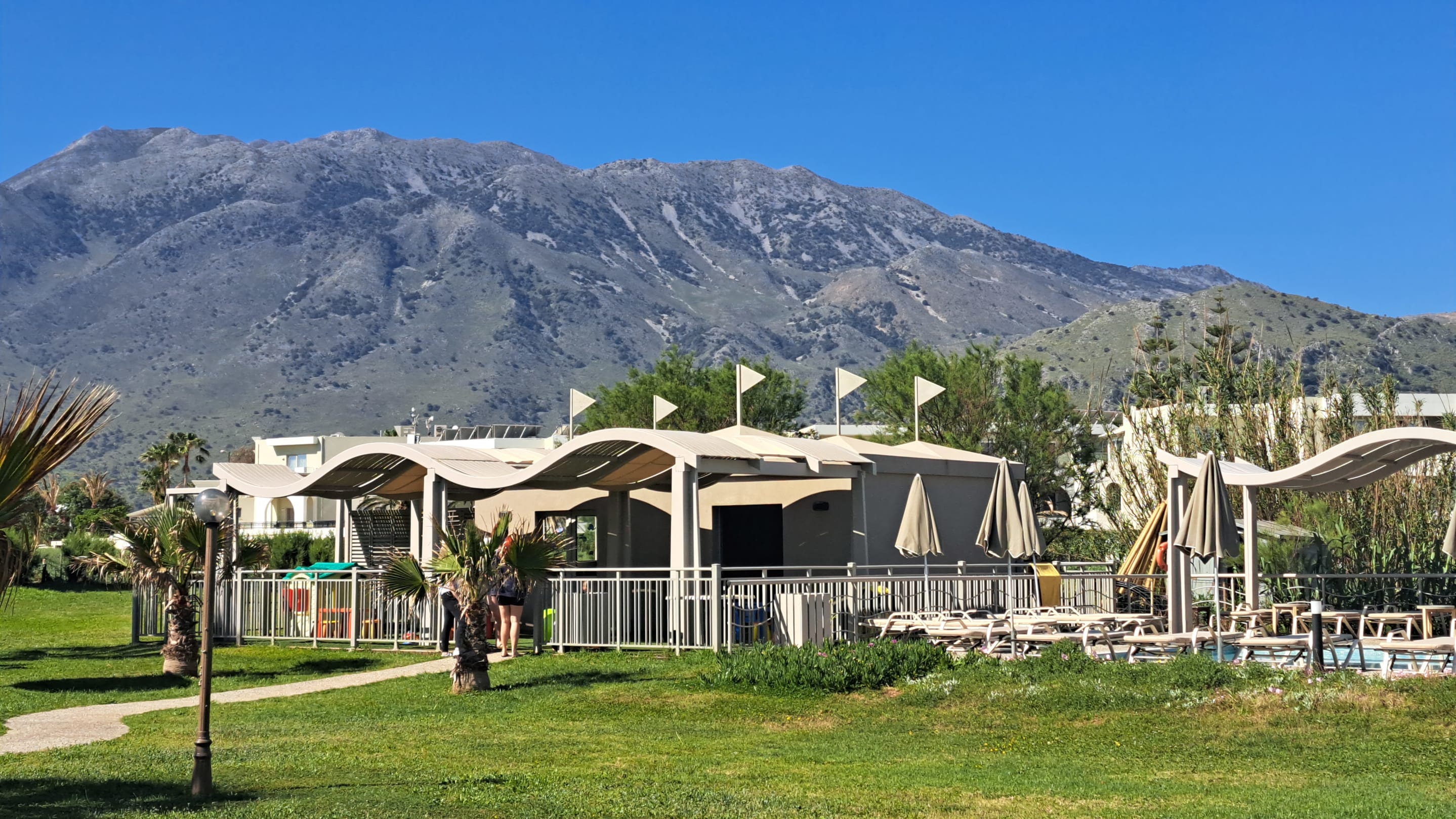 Kinderbetreuung mit Bergen im Hintergrund
