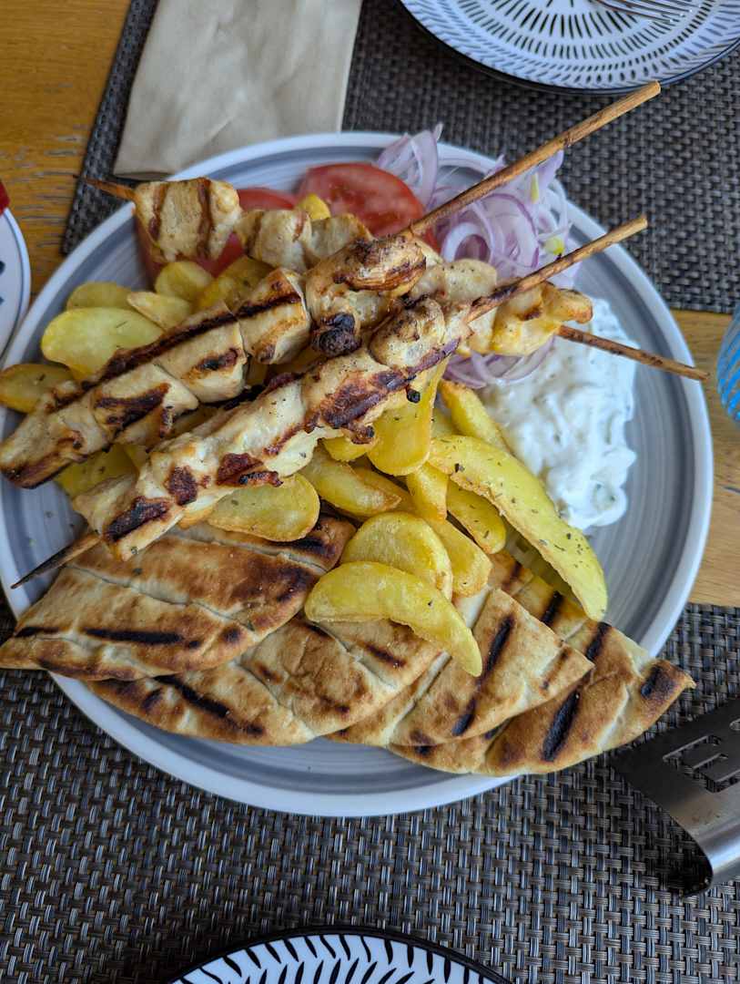 Hähnchensouvlaki a la Carte Strandrestaurant am Mittag