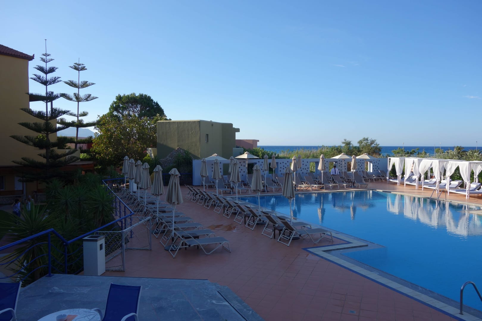 Hauptbecken der Poolanlage, Blick von Restaurant
