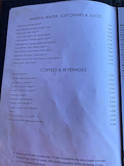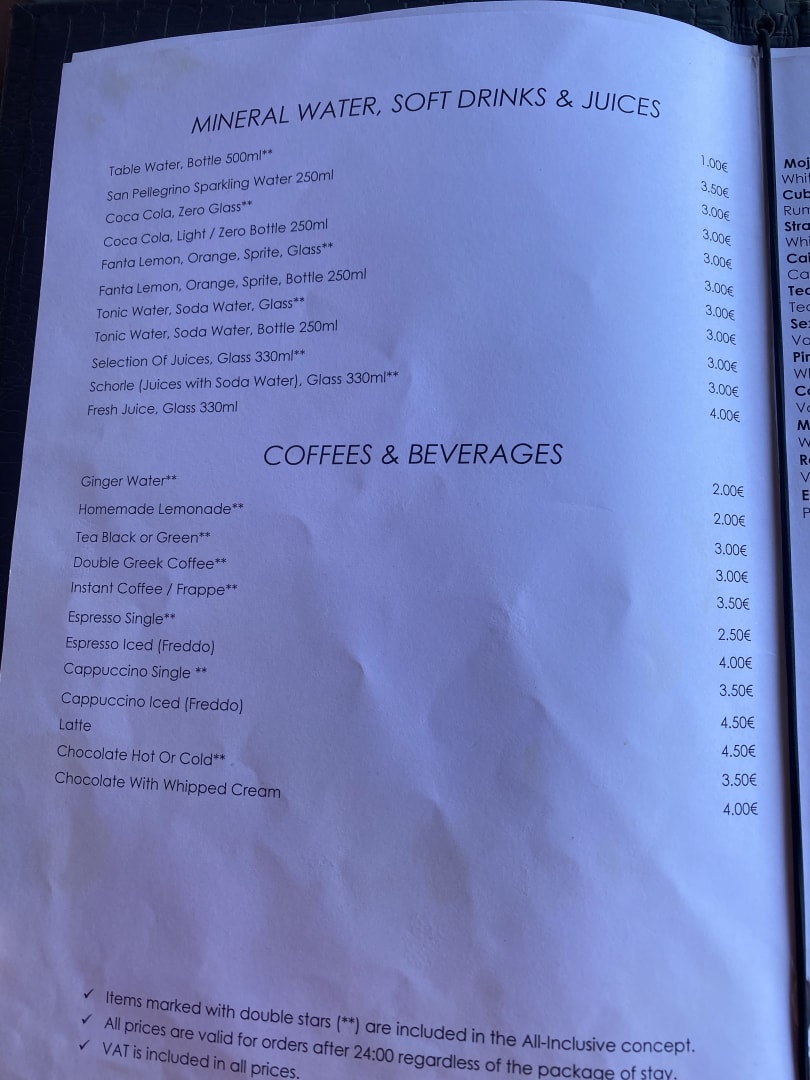 Getränkekarte, alles mit ** ist im All inklusive enthalten
