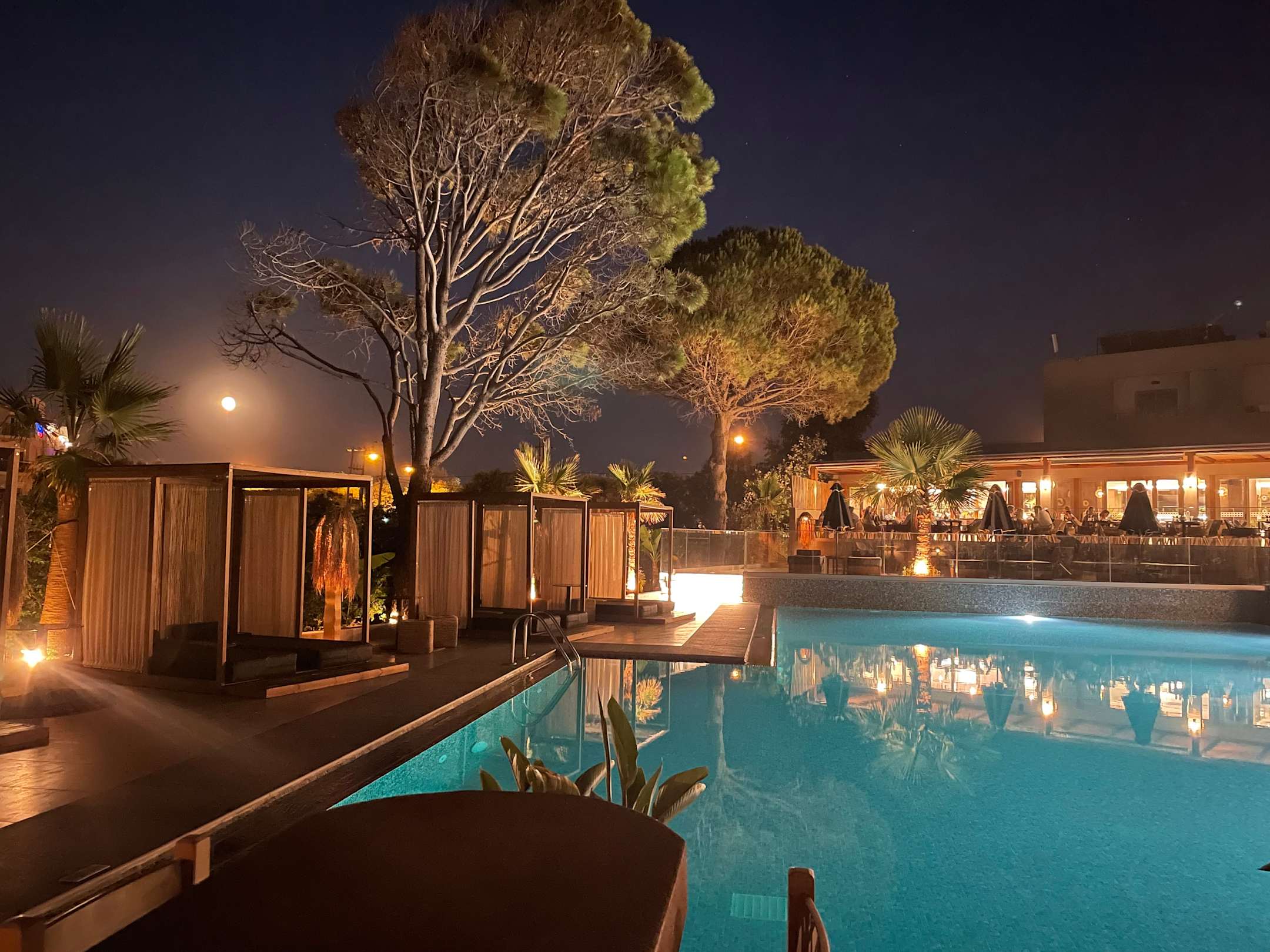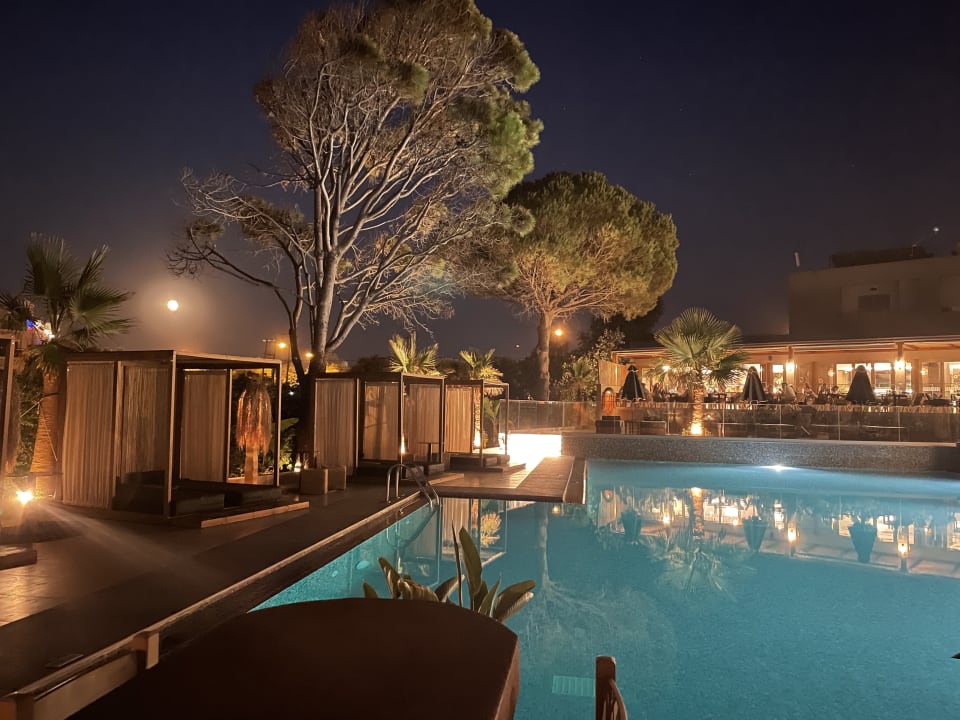 Poolbereich bei Nacht