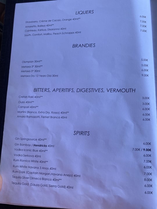 Getränkekarte, alles mit ** ist im All inklusive enthalten