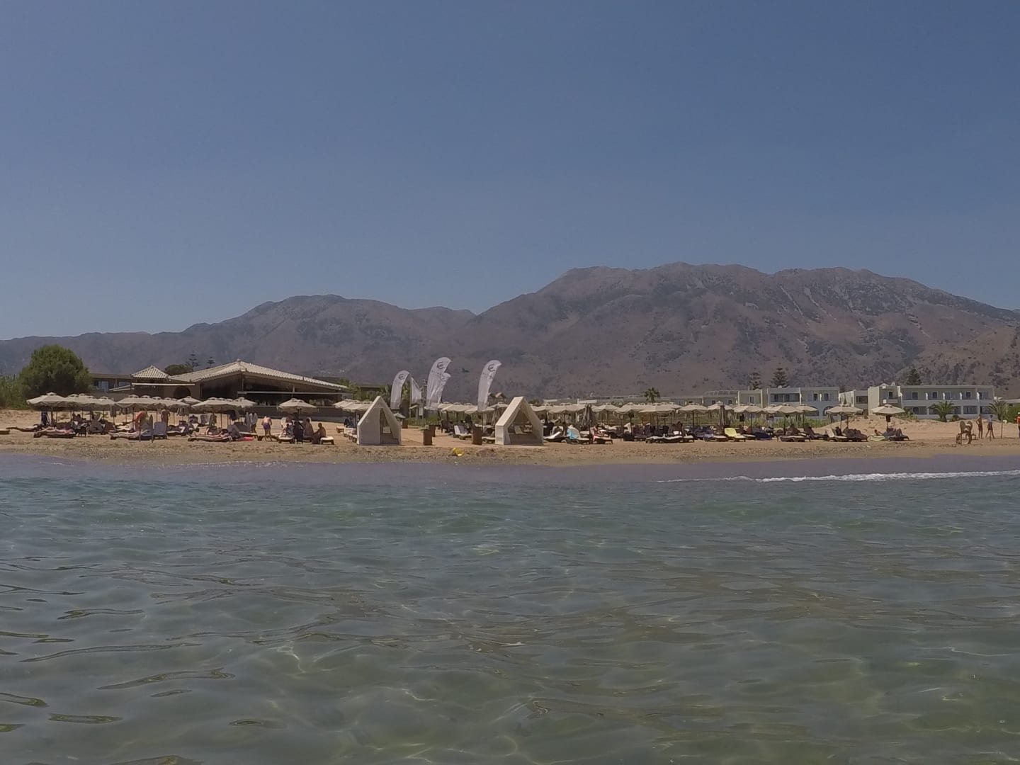 Hotelstrand vom Meer aus
