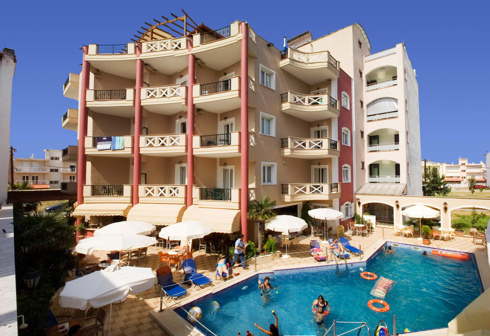 Der Pool mit Liegen im Innenhof
