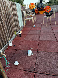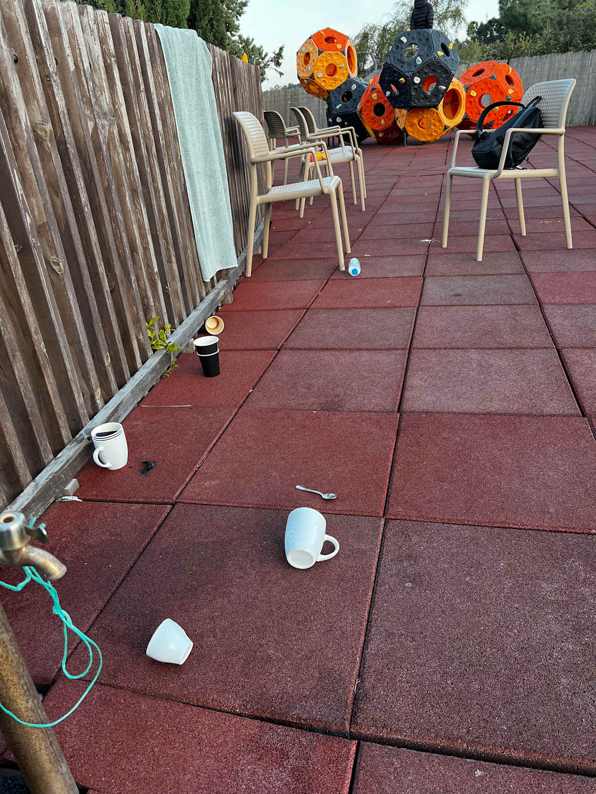 Spielplatz mit schmutzigen Geschirr