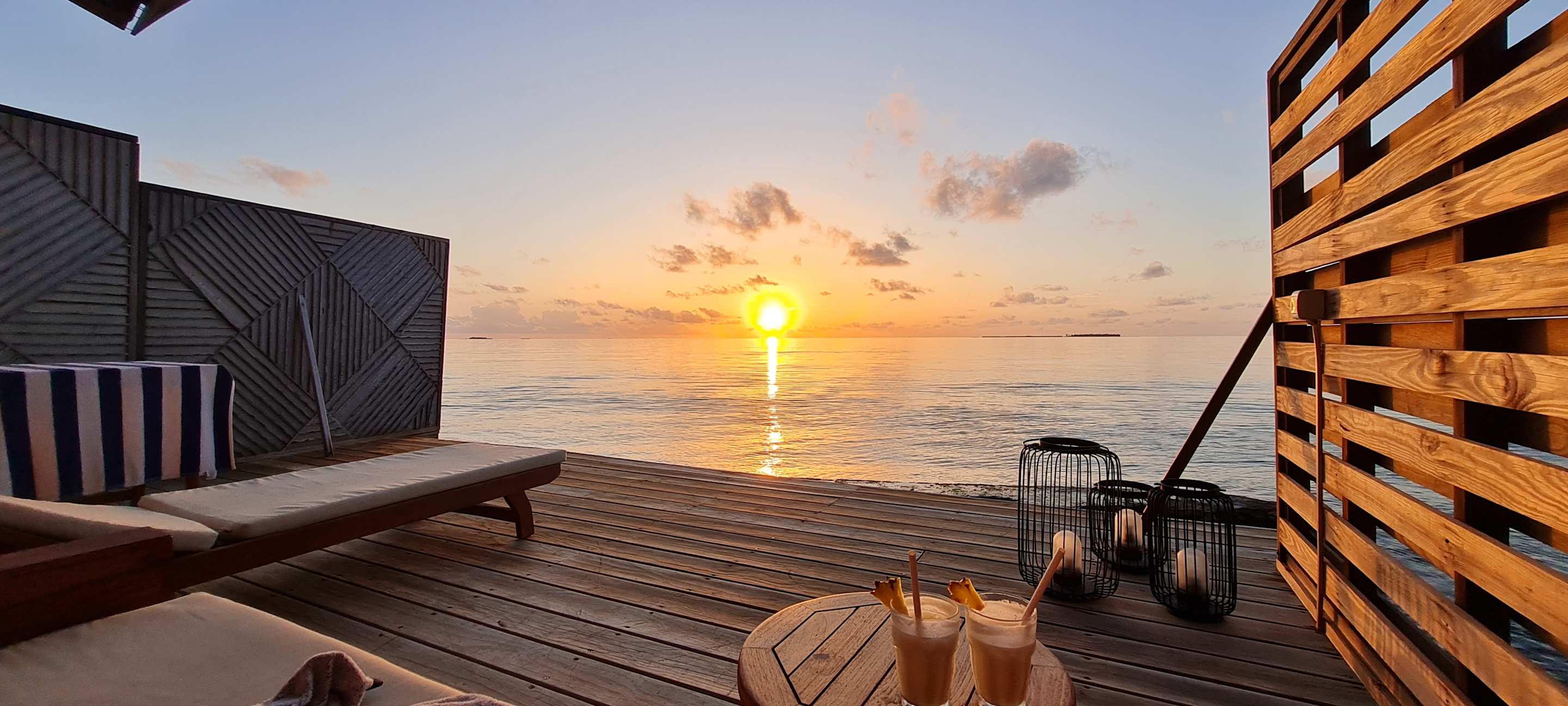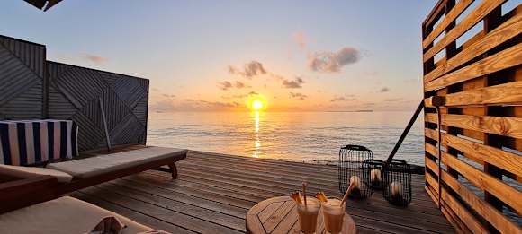 AusblickDie Terrassen der Wasservillen sind groß und bieten einen tollen Ausblick. Hier entstehen Eindrücke, die man lange bei sich trägt.