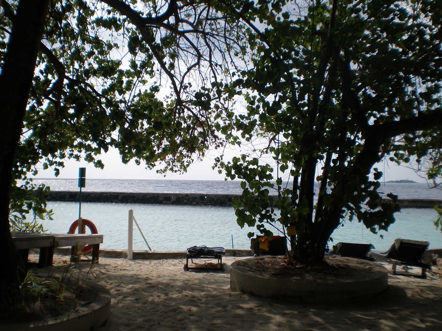 Direkt vor der TürSo oder so ähnlich sieht es direkt vor den Bungalows aus. Überall stehen Liegen und es gibt Möglichkeiten zum Einstieg ins Wasser