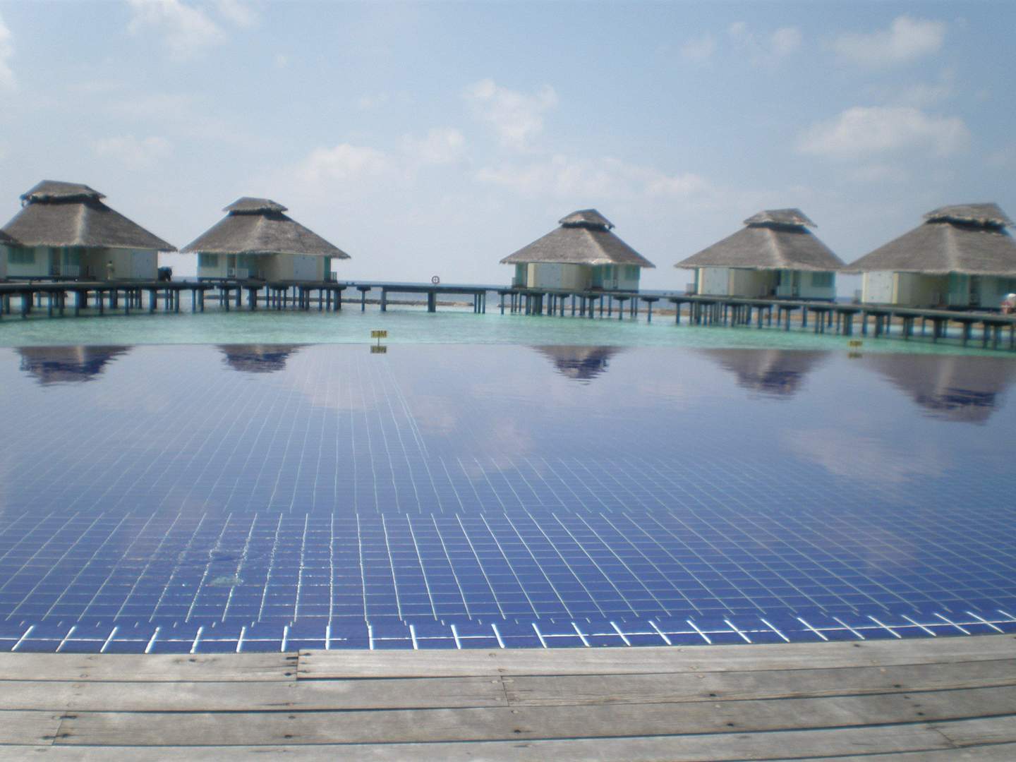 Pool mit Wasserbungalows dahinter