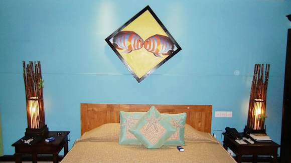 Bett im Beachbungalow