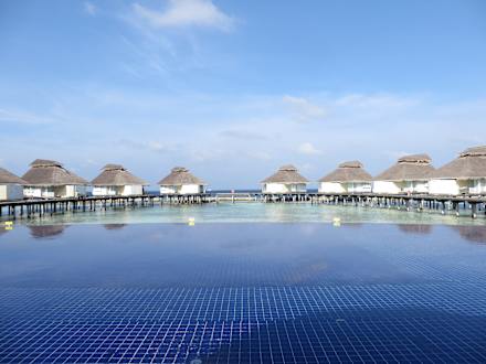 Pool mit den Wasserbumgalowsmit kleinen Kindern nicht erlaubt und auch nicht nötig, denn die "normalen Bungalows" sind TOP!