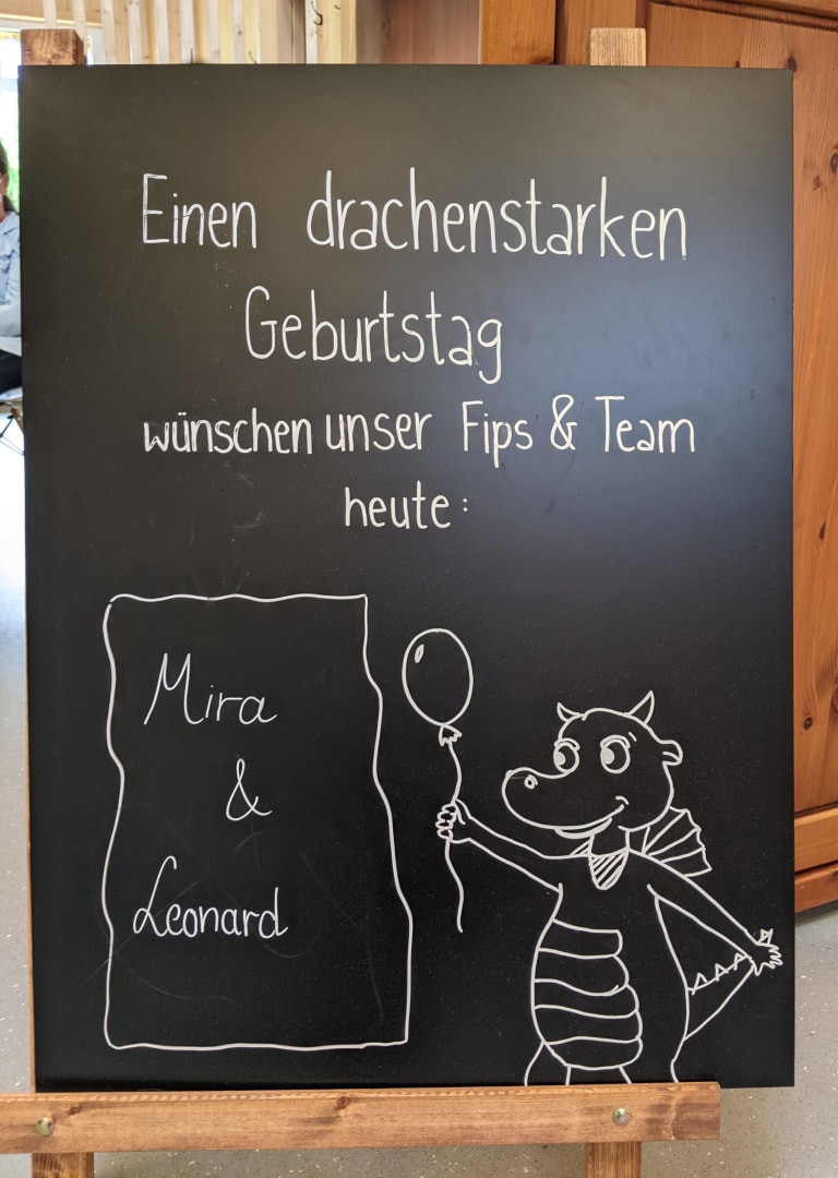 SonstigesKindergeburtstag wird mit Geburtstagslied und kleinem Geschenk vom Drache "Fips" gefeiert. Sehr herzlich und richtig toll!