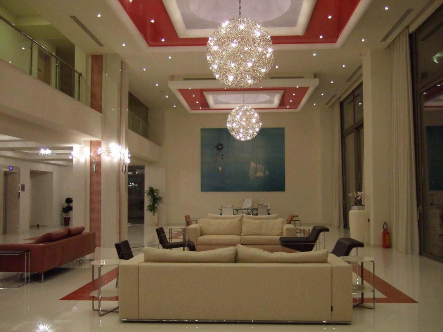 Blick auf eine Sitzecke, der Rezeption