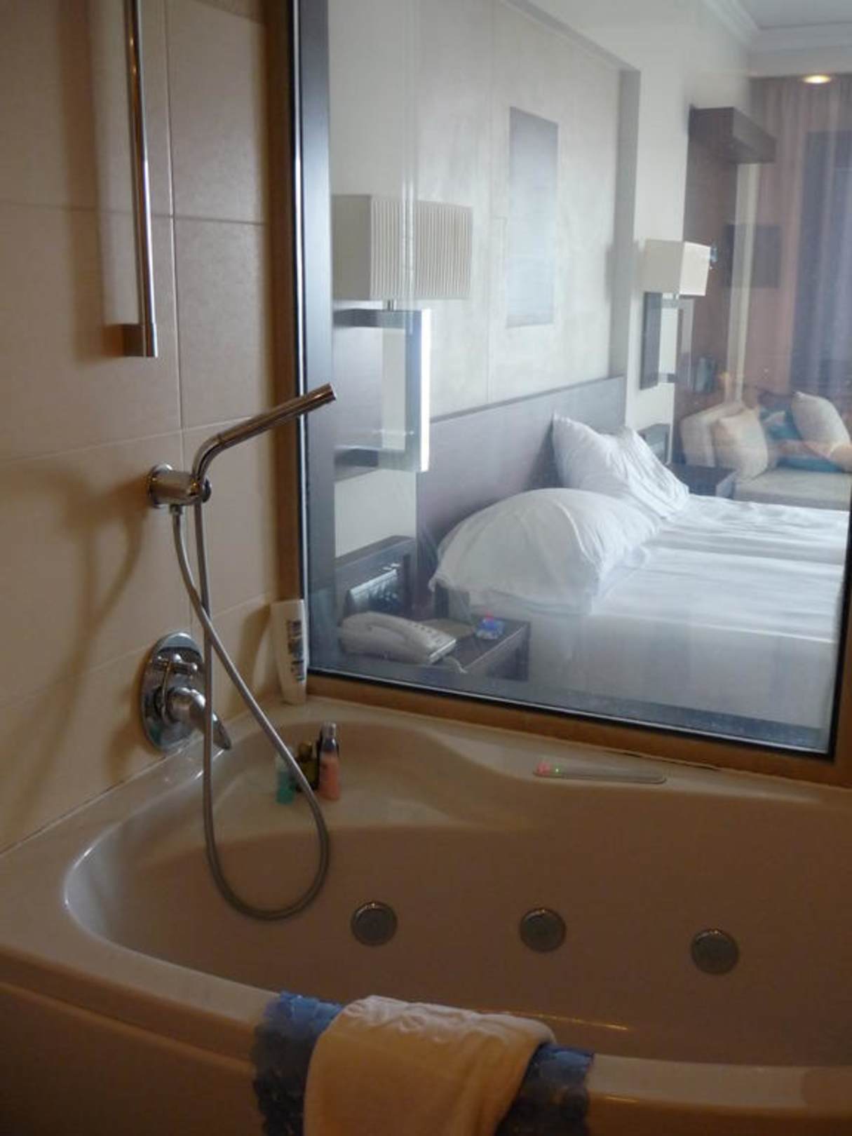 ...das Glas kann mit einem Schalter milchig eingestellt werden...