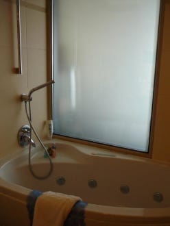 Bad mit Hydromassage-Badewanne...nun kann man nicht mehr durch das Glas sehen...nur noch Schatten...alles per Betätigung eines Schalters