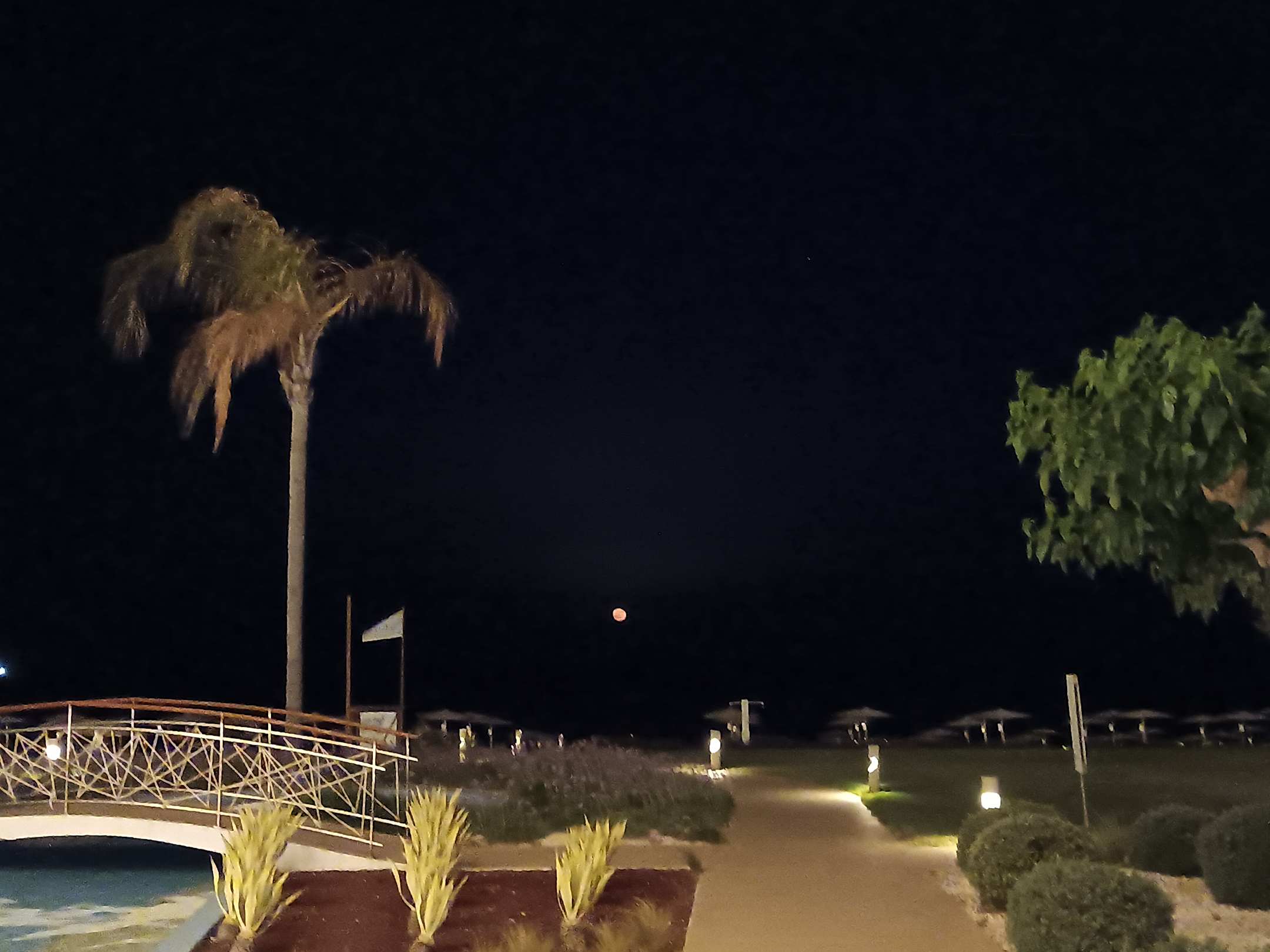 Ausblick aufs Meer. Sowie eine kleine Brücke über einen angelegten Teich.