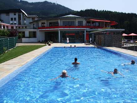 Im Hintergrund das Hallenbad