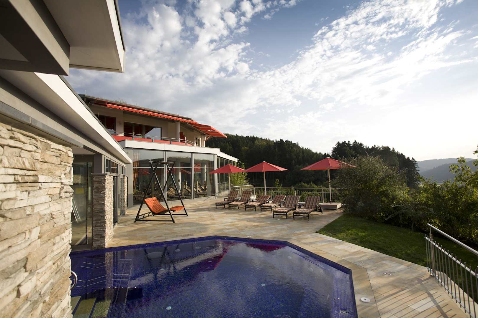 Außensprudelbecken mit Liegemöglichkeiten