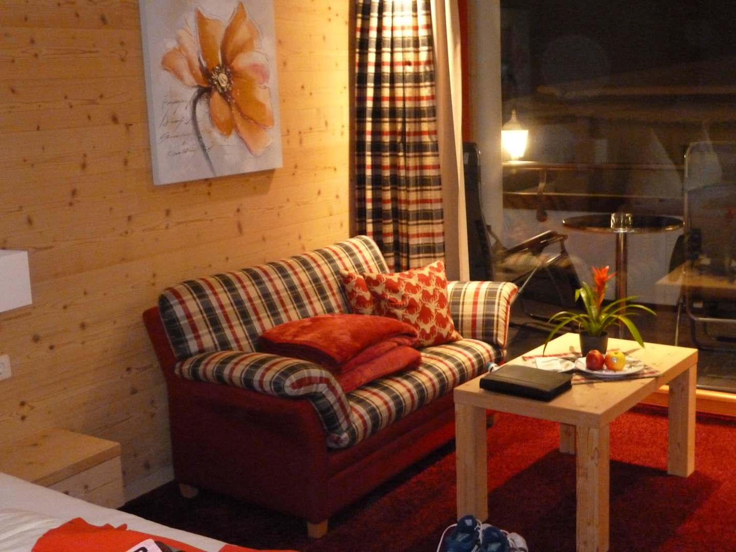 Gemütliche Sitzecke im neu renovierten Zimmer "Sonnenflügel"