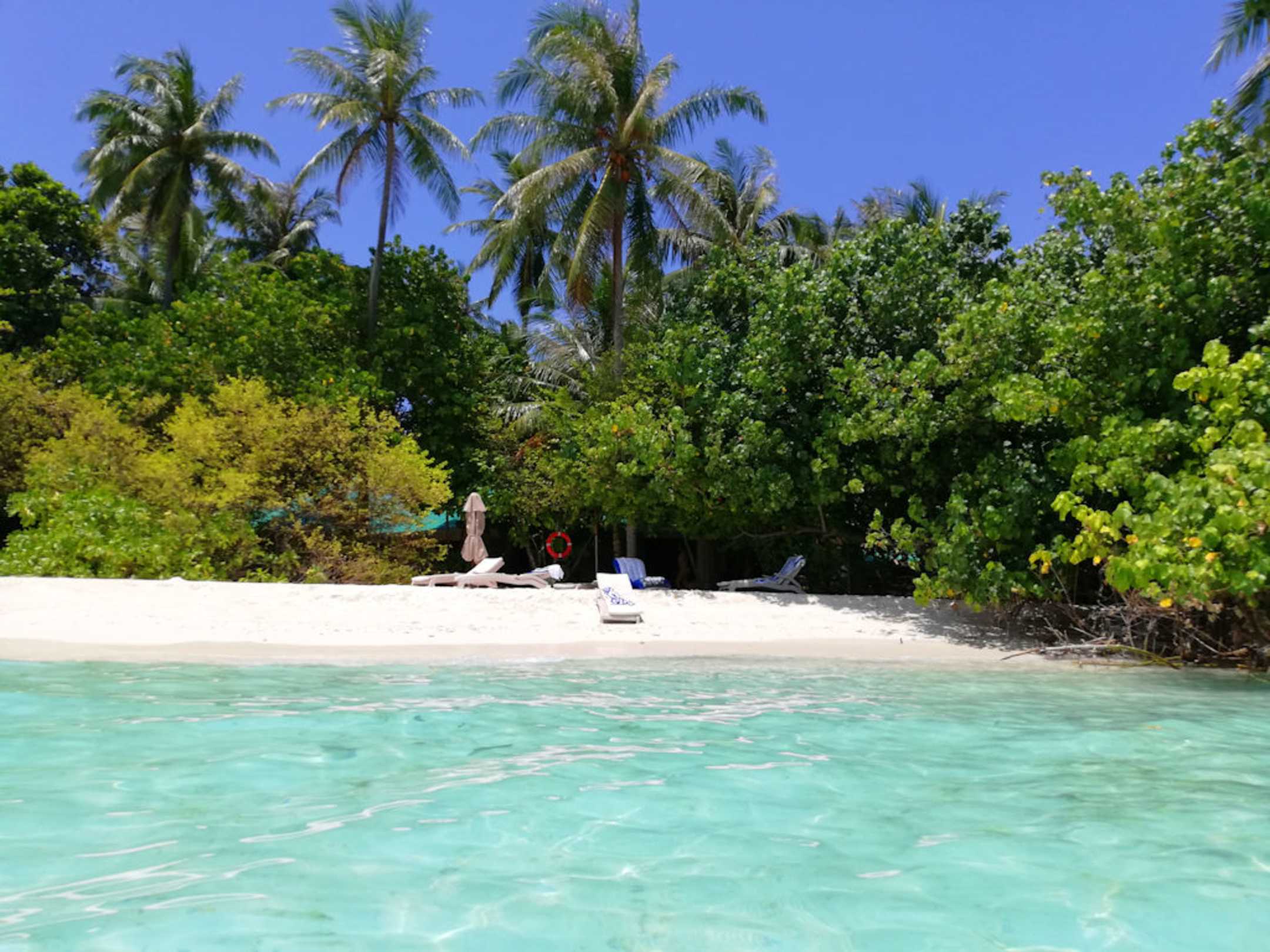 unser "privater" Strand, die Bungalows gleich dahinter