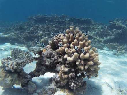 Eine lebende Koralle mit Fischen