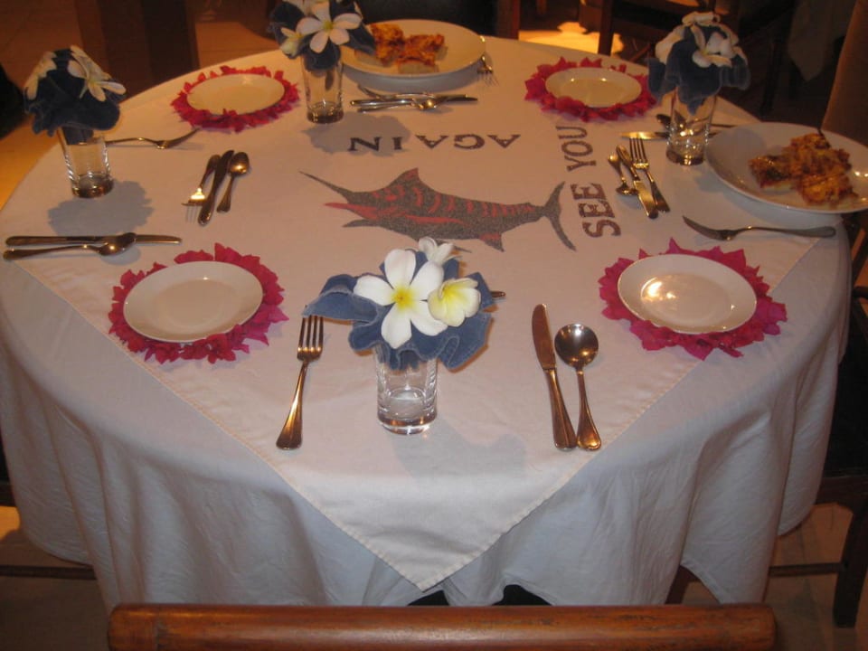 Tischschmuck am letzten Abend vor der Abreise.