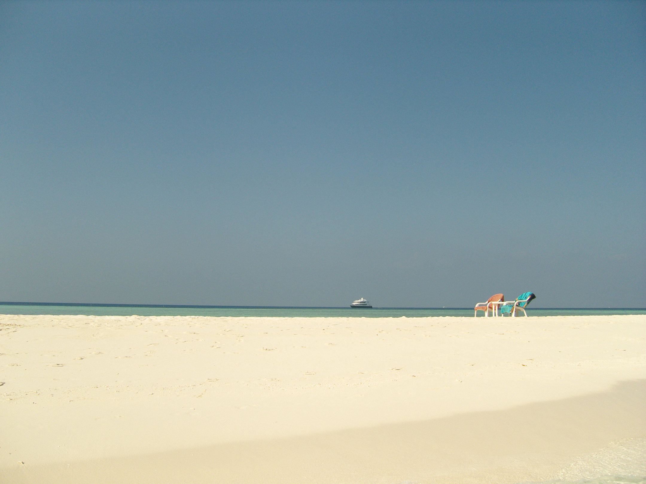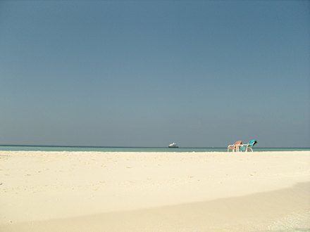 Hotelstrand mit einer 50.000.000 Euro Yacht