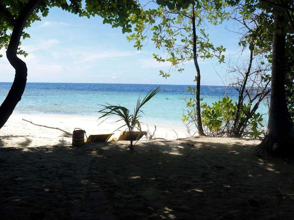 EmbuduEin Plätzchen in der Sonne. - Dies ist der Ausblick von unserem Bungi Nr. 79. Die Schneiße zum Ausenriff befindet sich hinten an der Fahne.