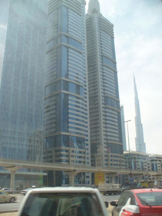 Der mittlere der drei Türme ist das Hotel Im Hintergrund Bur Khalifa