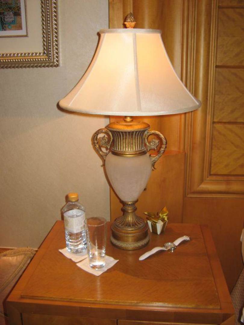 Eine von 2 Tischlampen neben dem Bett