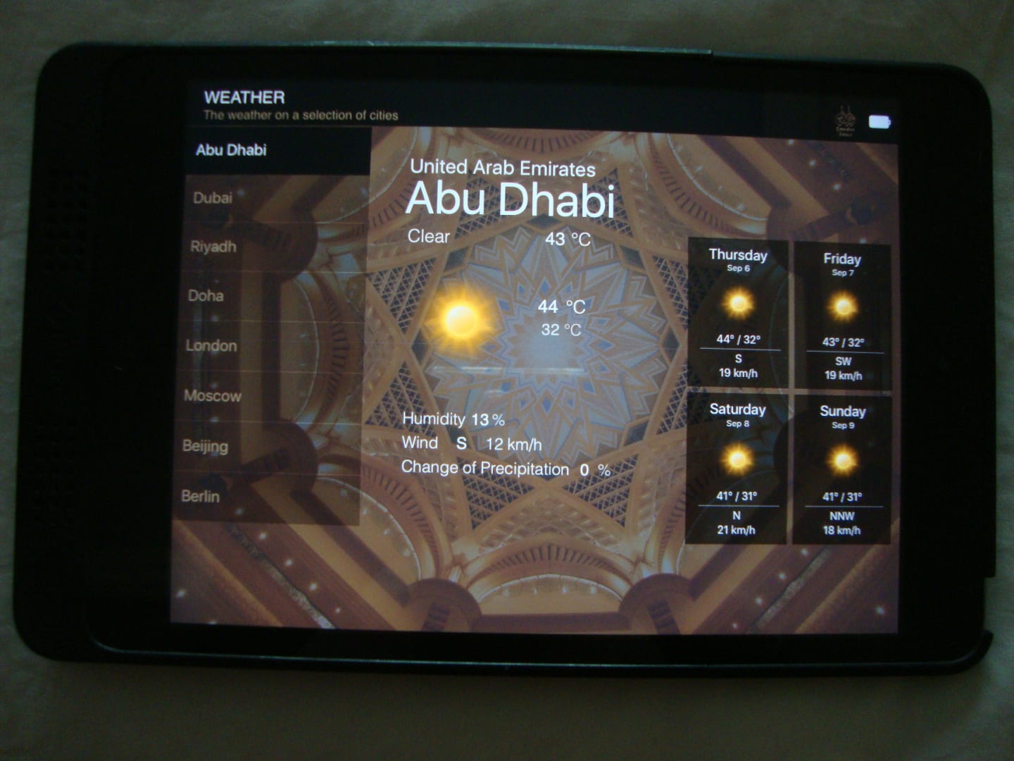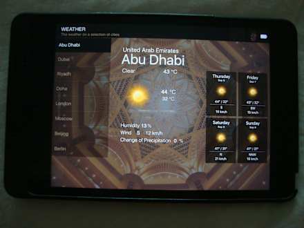 Auf dem Zimmer bekommt man ein Tablet zur Verfügung gestellt. Hiermit kann man das Wetter abrufen.