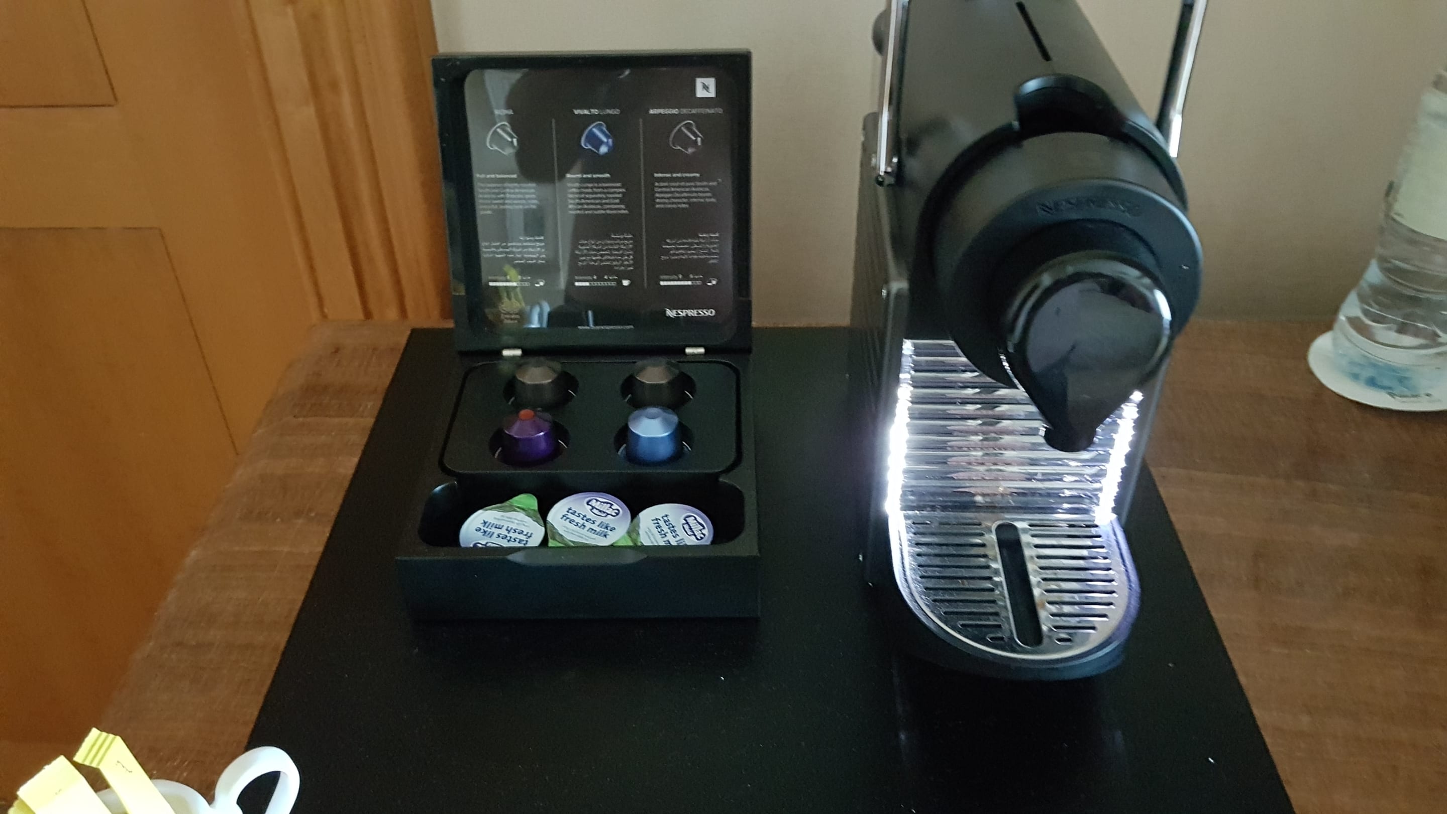 Seit diesem Jahr (2018) gibt es Kaffeemaschine auf dem Zimmer! Kapseln werden 1 mal am Tag aufgefüllt.