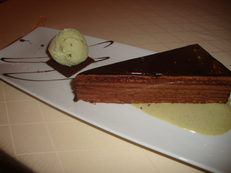 GastroA la Carte Restaurant "Mezzaluna" - Nachspeise (Schokoladentorte mit sizilianischem Pistazieneis)