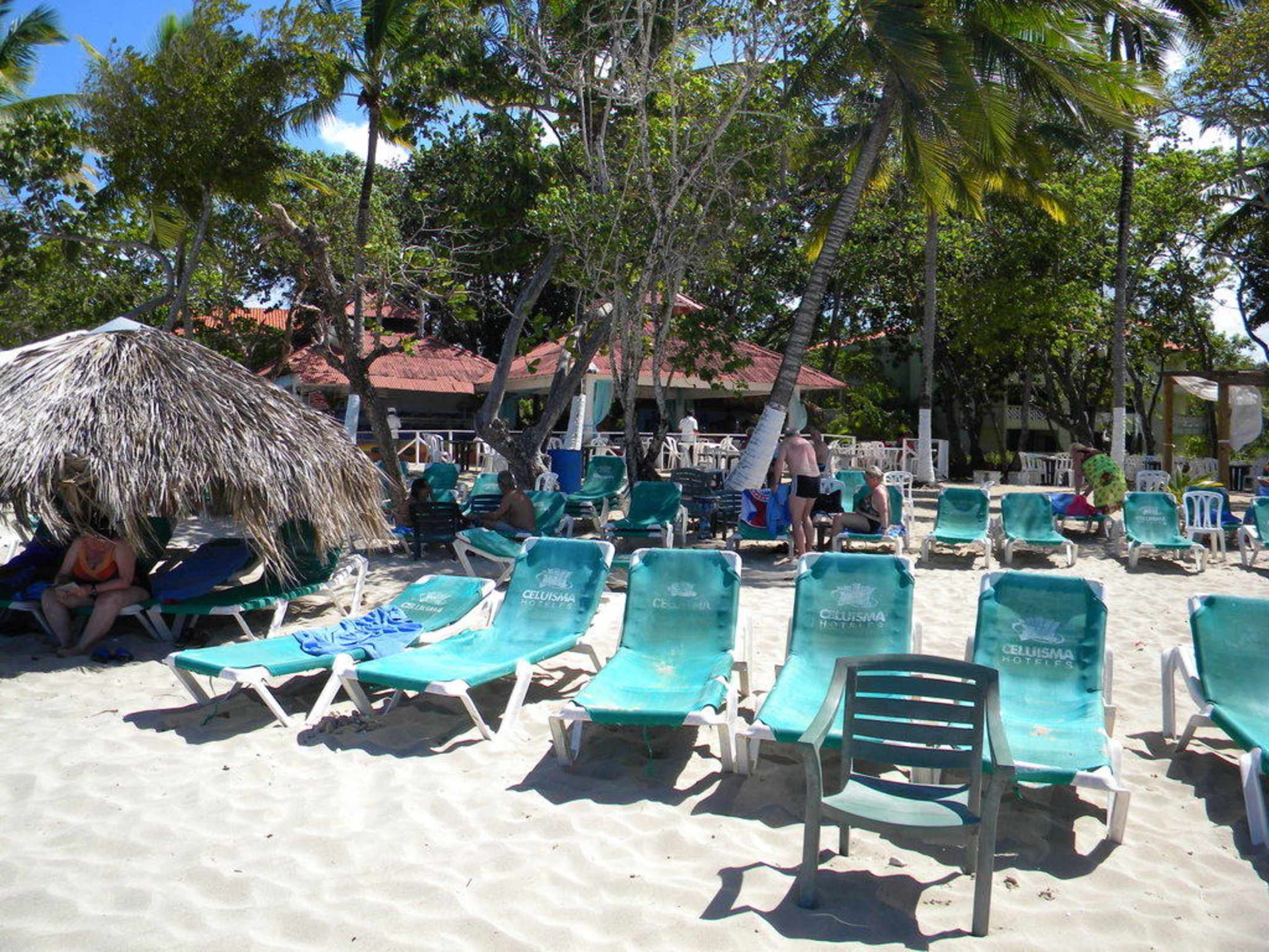 Im Hintergrund die Strandbar