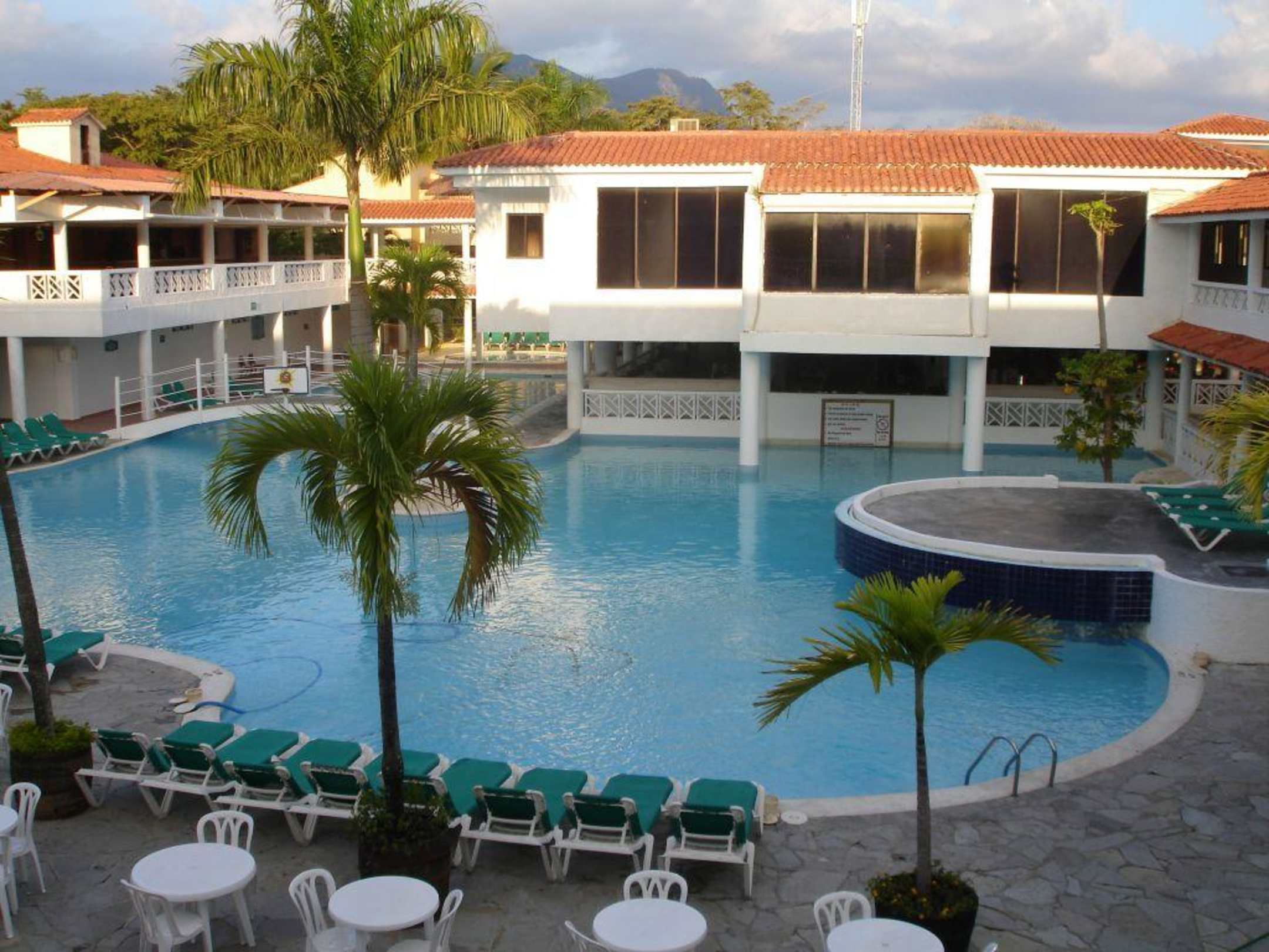 Pool mit Hauptrestaurant im Hintergrund