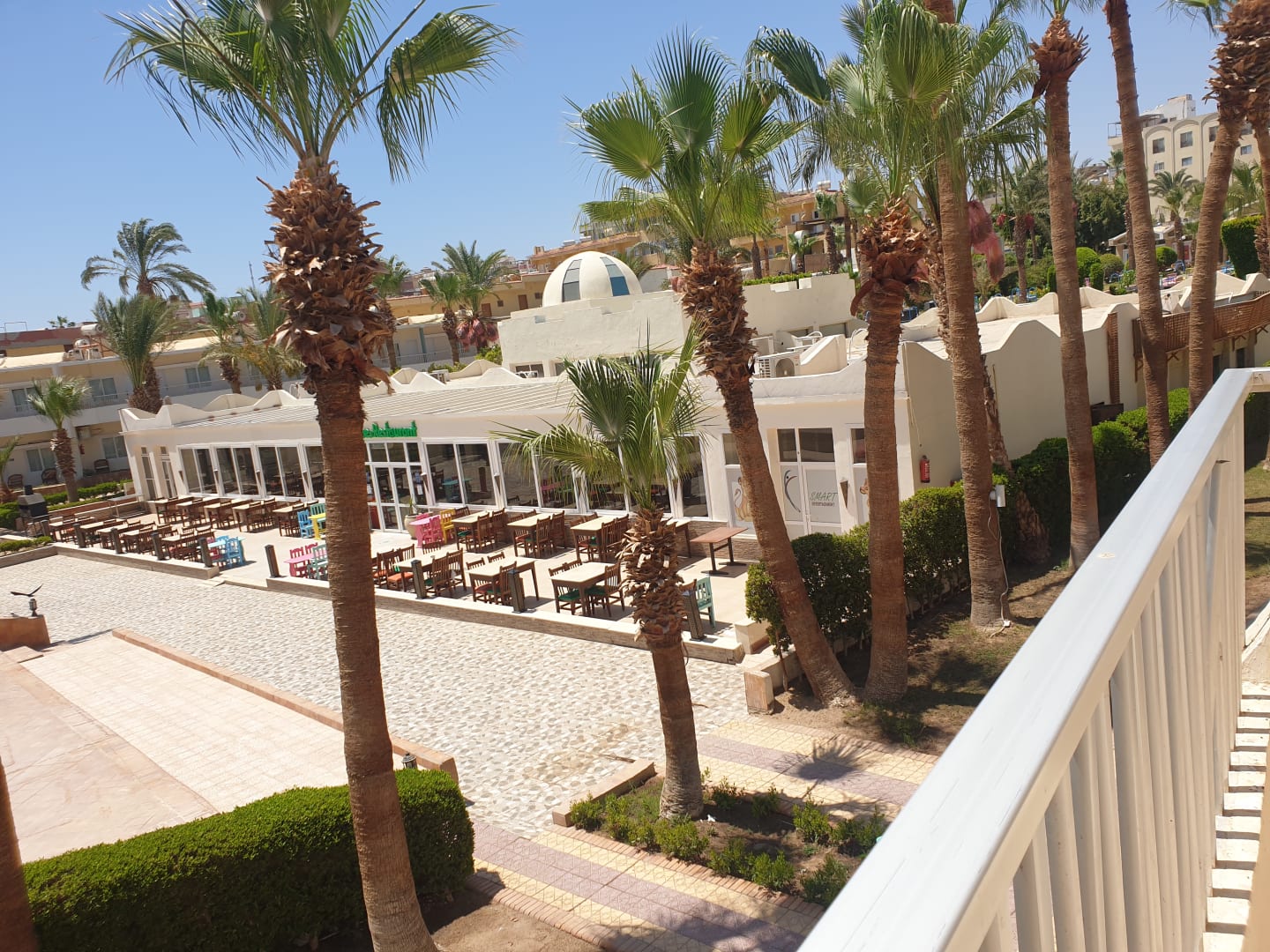 Blick von unserem Familienzimmer auf das Restaurant