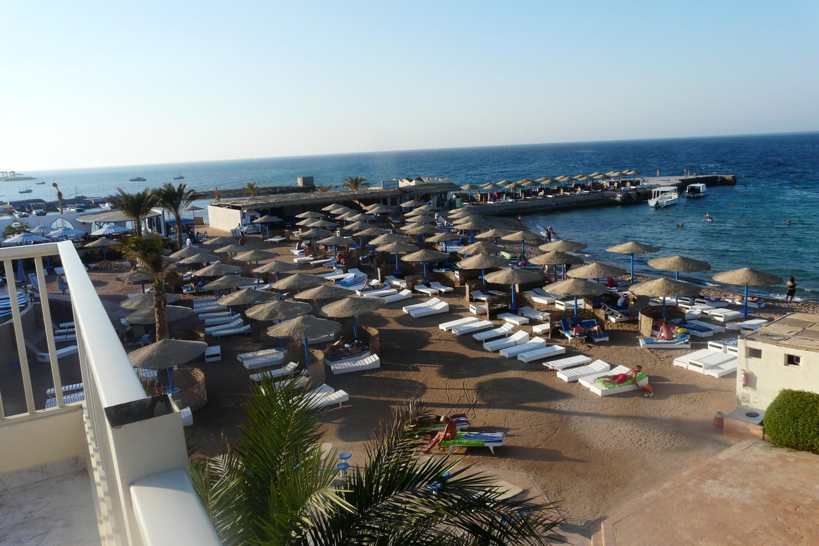 Plaża hotelowaWidok na hotelową plażę z tarasu znajdującego się na dachu budynku najbliżej morza.