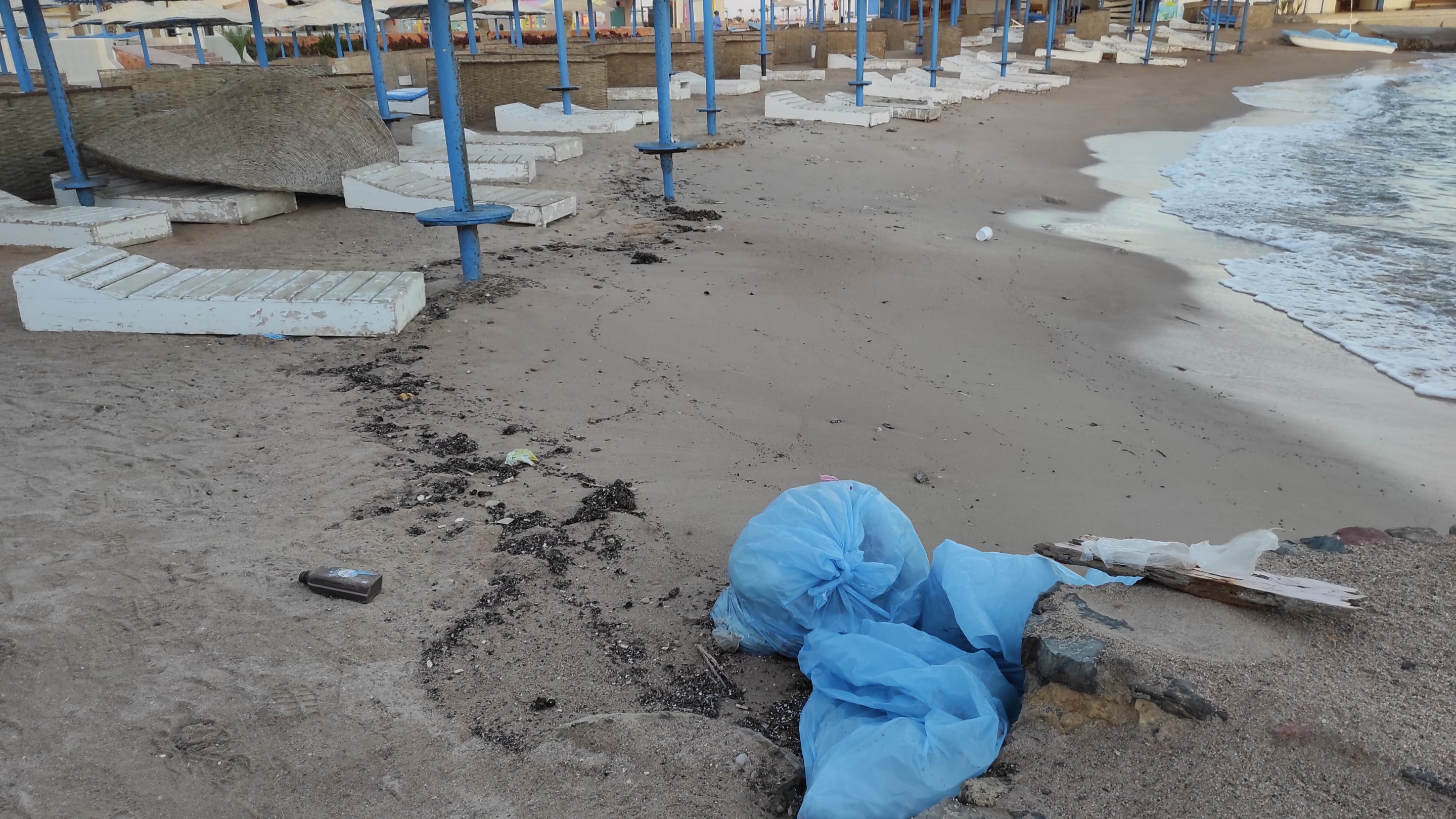 Strandmanchmal nach dem Sturm und starken Wind, lag auch bei unsrem Strand Plastikmüll herum, doch man bemühte sich schnell diesen zu beseitigen